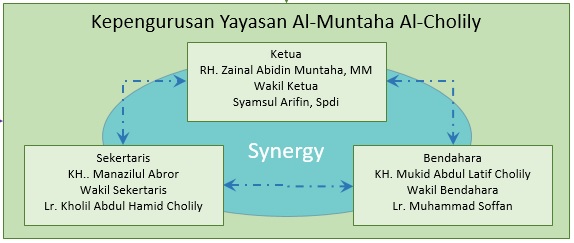 Kepengurusan Yayasan Al-Muntaha Al-Cholily merupakan konseptor inovasi serta pelaksana atas kebijakan Pondok Pesantren yang sudah diputuskan oleh Pengurus Pondok Pesantren Al-Muntaha Al-Cholily, dimana segala konsep dan inovasi yang dijalankan merupakan Arahan dari Pengasuh/Pembina Pondok Pesantren Al-Muntaha Al-Cholily.